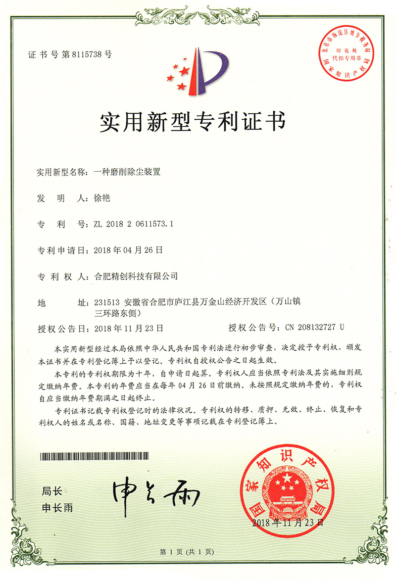 (2018實(shí)用新型)一種磨削除塵裝置