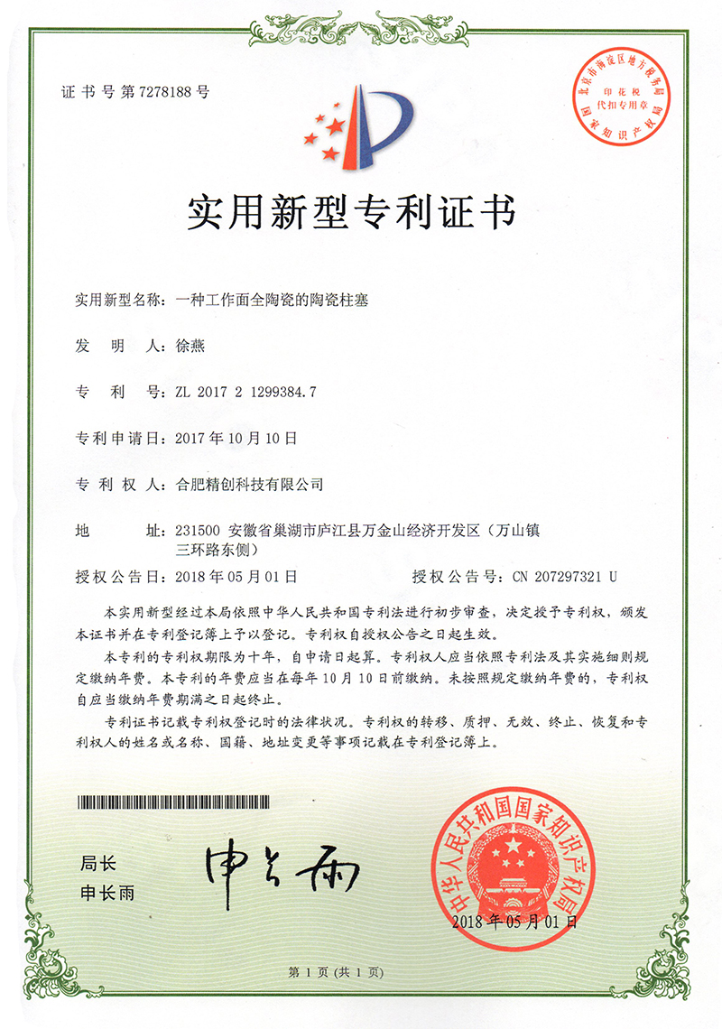 (2018實(shí)用新型)一種耐磨陶瓷柱塞